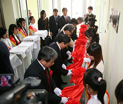 Cắt băng khánh thành Văn phòng hợp tác ĐHQGHN và Đại học Kyoto đặt tại tòa nhà G8 - ĐHQGHN, 144 Xuân Thủy, Cầu Giấy, Hà Nội. |