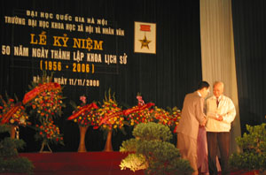 GS.TSKH Vũ Minh Giang - Phó giám đốc cùng đại diện lãnh đạo một số ban chức năng của ĐHQGHN; đại diện lãnh đạo Ban Khoa giáo Trung ương và Thành uỷ Hà Nội; lãnh đạo Viện Khoa học Xã hội cùng đại biểu đến từ một số sở văn hoá thông tin, viện nghiên cứu, bảo tàng, trung tâm lưu trữ ở Trung ương và Hà Nội; đại diện Ban Giám hiệu và các phòng chức năng của Trường ĐHKHXH&NV cùng với đông đảo các thế hệ thầy và trò của Khoa Lịch sử đã tham dự buổi lễ…