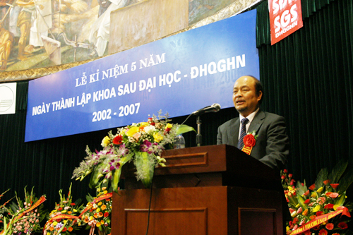 Phát biểu tại buổi lễ, GS. Đào Trọng Thi đã chúc mừng tập thể Khoa Sau đại học và mong rằng Khoa Sau đại học sẽ tiếp tục nỗ lực phấn đấu để tới năm 2010, quy mô đào tạo sau đại học của ĐHQGHN sẽ đạt tỷ lệ 25 % trên tổng quy mô đào tạo chính quy như Kế hoạch chiến lược phát triển ĐHQGHN đến năm 2010 và tầm nhìn đến năm 2020 đã đề ra; phấn đấu để chương trình dào tạo và học viên của ĐHQGHN đạt được tiêu chuẩn quốc tế, góp phần vào sự phát triển chung của ĐHQGHN.