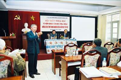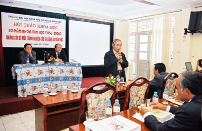 Cùng dịp này, hội thảo khoa học mang tên “Những vấn đề mới trong nghiên cứu và giảng dạy Văn học” do Ban Chủ nhiệm Khoa Văn học tổ chức đã thu hút được sự quan tâm của đông đảo các nhà khoa học, nhà nghiên cứu trong ngành. 46 bản tham luận được các tác giả gửi tới tham dự hội thảo đã phản ánh được nhiều khía cạnh mới trong nghiên cứu và giảng dạy văn học như: đặt vấn đề mới, phát hiện tư liệu mới, đưa ra cách lý giải mới, giới thiệu lý thuyết mới, phương pháp tiếp cận văn bản mới… Hội thảo khoa học lần này đã phản ánh trung thành đặc điểm và trình độ của giới nghiên cứu văn học Việt Nam hiện nay đồng thời đánh dấu chặng đường nửa thế kỷ giảng dạy và nghiên cứu văn học của nhiều thế hệ, dự báo hướng đi sắp tới của một đội ngũ mới…
