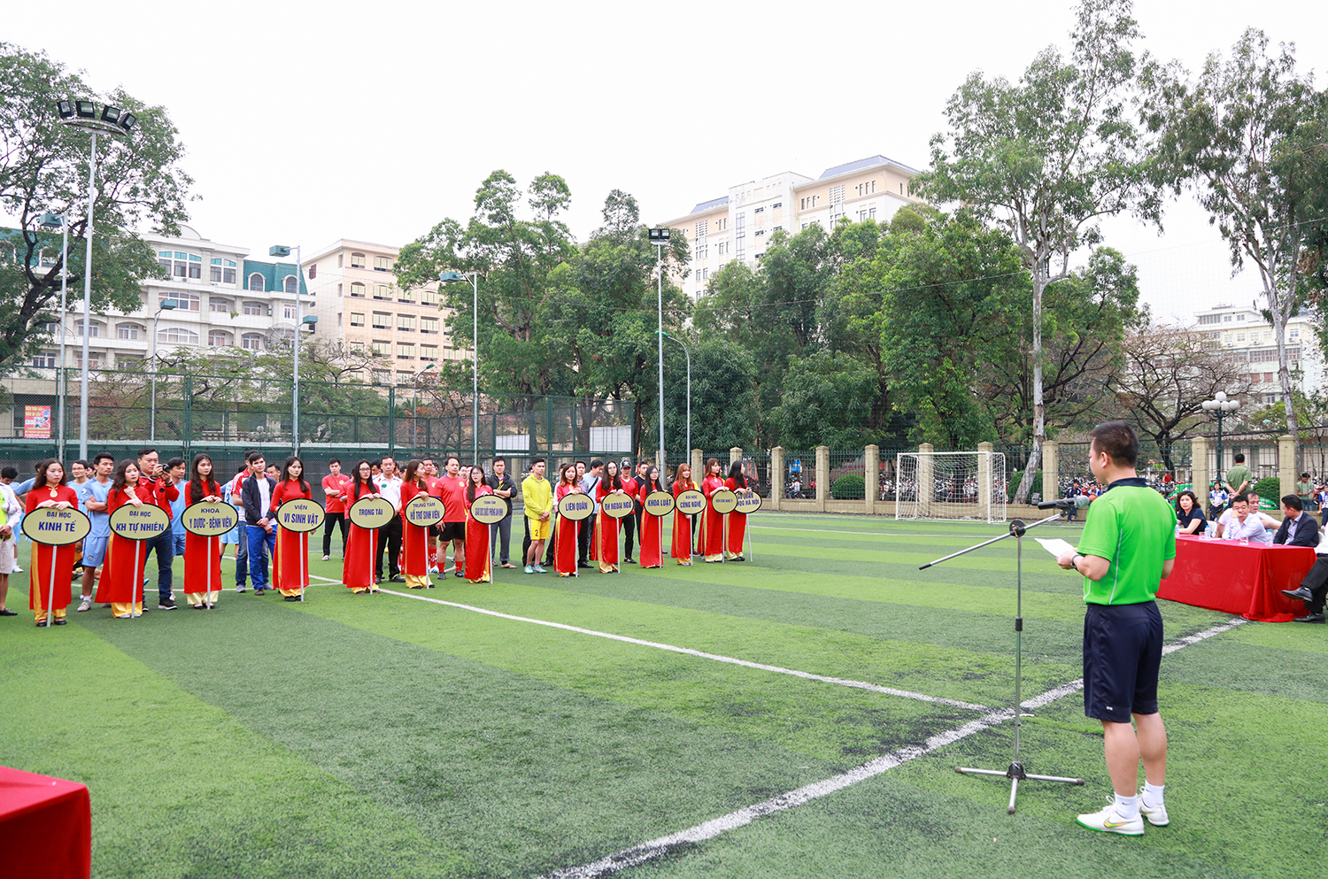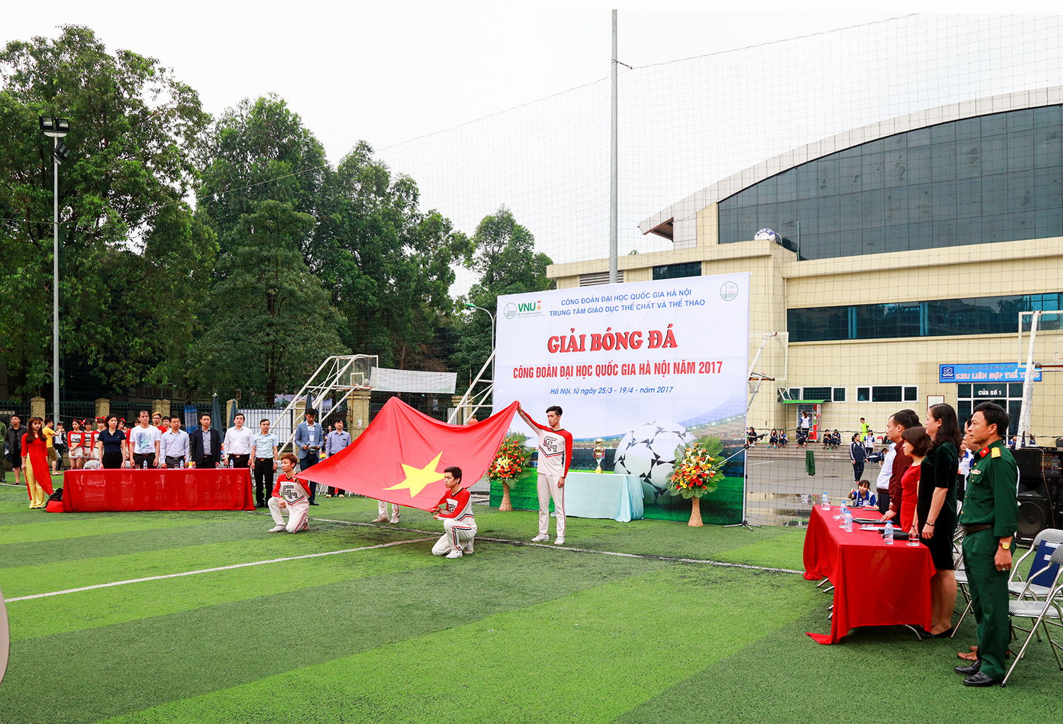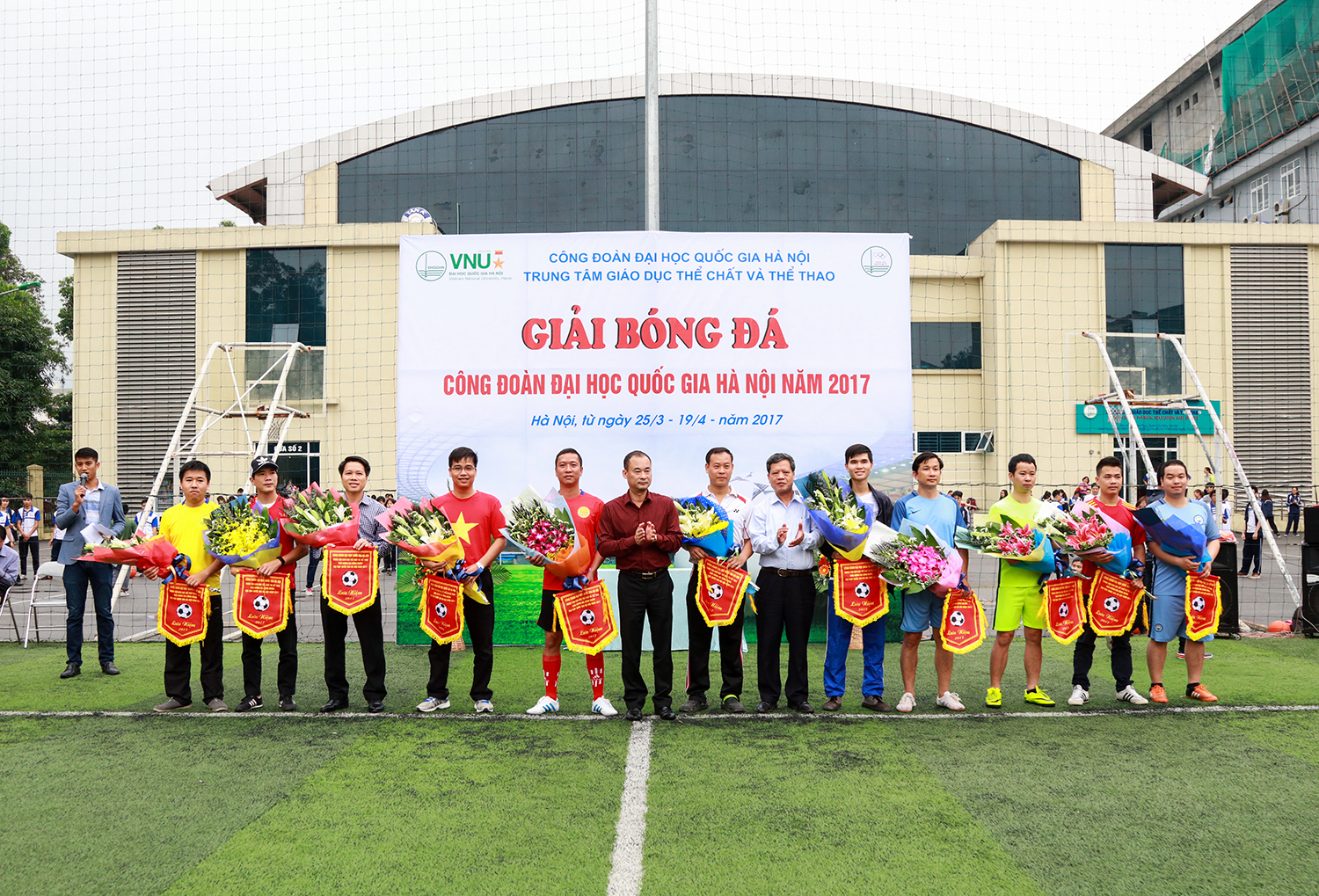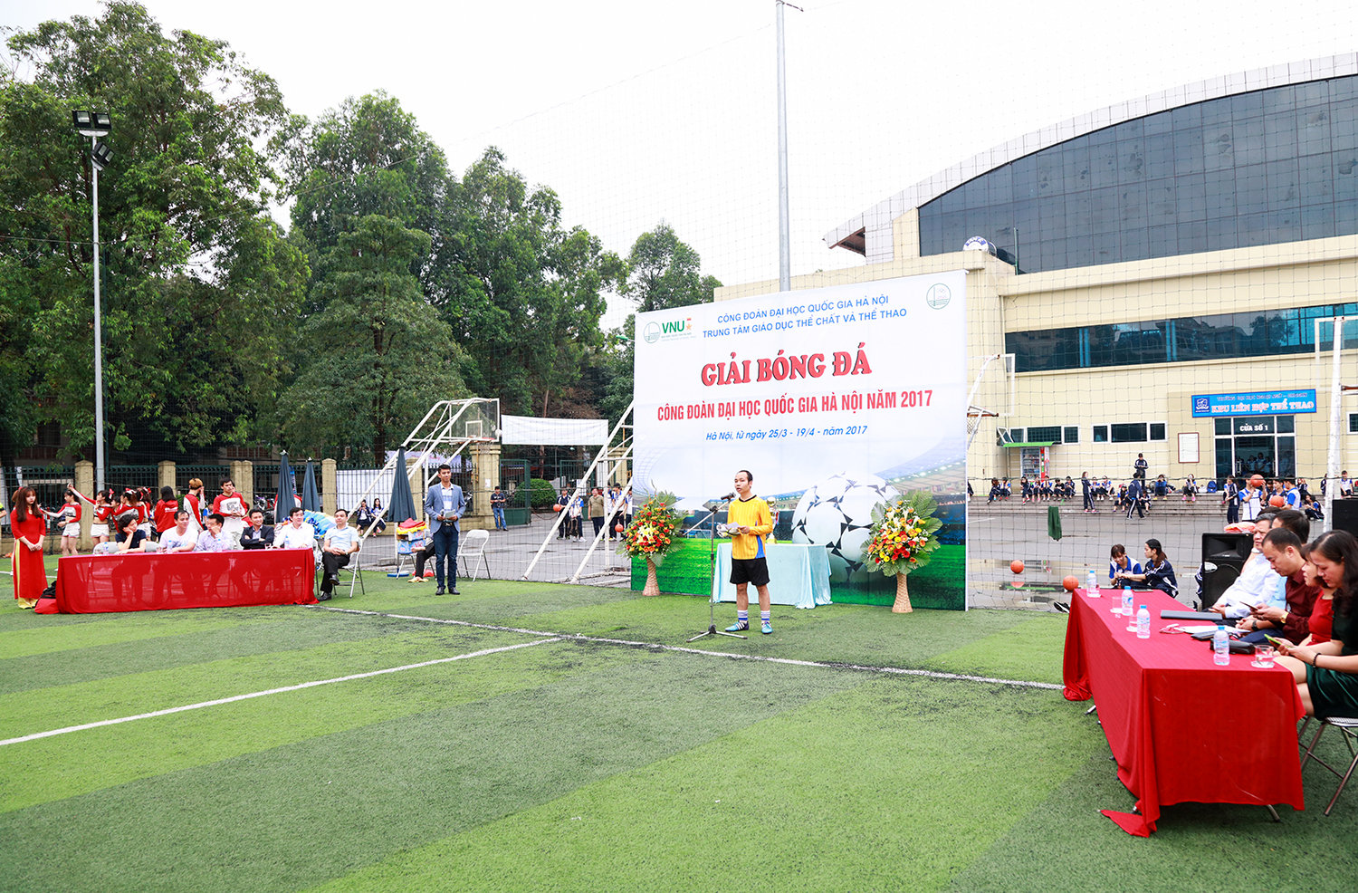 Ngay sau lễ khai mạc được tổ chức trang trọng với sự hiện diện của các đại biểu là lãnh đạo Công đoàn ĐHQGHN, lãnh đạo các đơn vị thành viên và trực thuộc ĐHQGHN, các cặp đấu đầu tiên đã diễn ra rất sôi nổi, với nhiều pha tranh bóng và ghi bàn đẹp mắt.