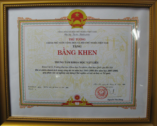 Trong khuôn khổ buổi lễ, PGS.TS Bùi Duy Cam thay mặt lãnh đạo Đảng ủy, Nhà trường trao Bằng khen của Thủ tướng Chính phủ cho lãnh đạo Trung tâm KHVL, chúc mừng những thành tựu mà Trung tâm KHVL đã đạt được trong thời gian qua, đồng thời bày tỏ sự kỳ vọng vào sự phát triển của Trung tâm cùng với sự phát triến đi lên của trường trong thời gian tới.