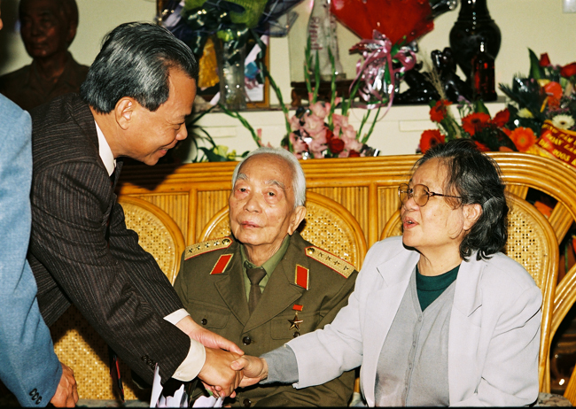Đoàn cán bộ ĐHQGHN đến chúc mừng Đại tướng nhân ngày thành lập Quân đội Nhân dân, 22/12/1999