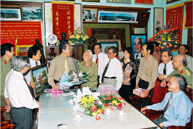 GS. Nguyễn Văn Đạo - Giám đốc cùng cán bộ ĐHQGHN đến chúc mừng sinh nhật Đại tướng, năm 1998
