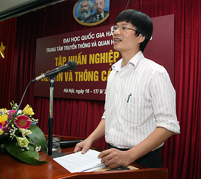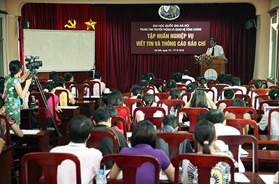 Phát biểu khai mạc khóa tập huấn, GS.TSKH Vũ Minh Giang – Phó Giám đốc ĐHQGHN nhấn mạnh, đối tượng của báo chí rộng lớn và bao hàm nhiều lĩnh vực. Tác động của báo chí truyền thông có ảnh hưởng lớn đối với công tác đối nội, đối ngoại của tổ chức. Vì vậy, người làm báo phải hiểu được mục đích cần truyền tải chứ không đơn thuần chỉ là kỹ năng viết tin, bài.