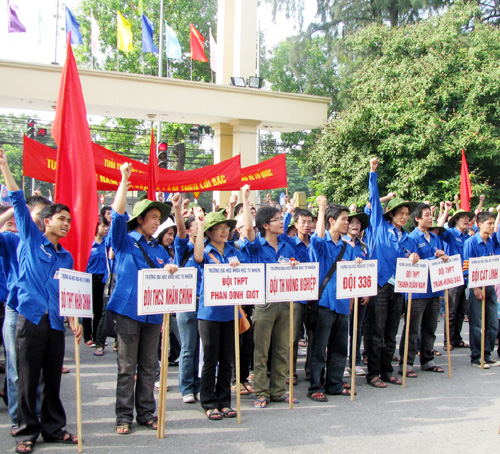 Đội “Tình thương” và đội “Tiếp sức mùa thi” được Đoàn trường và các vị đại biểu tặng hoa và quà động viên tinh thần trước khi làm nhiệm vụ. Kết thúc buổi lễ các chiến sĩ đã cất cao lời thề “quyết tâm thực hiện thành công chiến dịch” và lên đường trong khúc nhạc rộn ràng “Mùa hè xanh”…