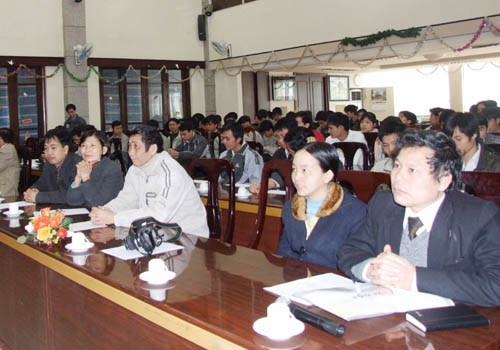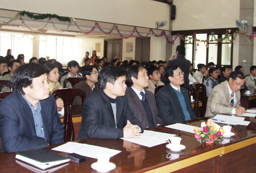 Tham dự buổi lễ về phía IMI có PGS.TS. Trương Hữu Chí – Chủ tịch, TS. Nguyễn Đức Minh – Phó Chủ tịch, TS. Trần Ngọc Hưng – Phó Tổng giám đốc; về phía Trường ĐHCN có GS.TS. Nguyễn Hữu Đức – Hiệu trưởng, PGS.TS. Trần Quang Vinh – Phó Hiệu trưởng, ThS. Nguyễn Quang Vinh – Trưởng Phòng Đào tạo đại học cùng các thầy cô giáo trong Ban quản lý Dự án đào tạo ngành Công nghệ Cơ Điện tử và 78 sinh viên khóa 1.