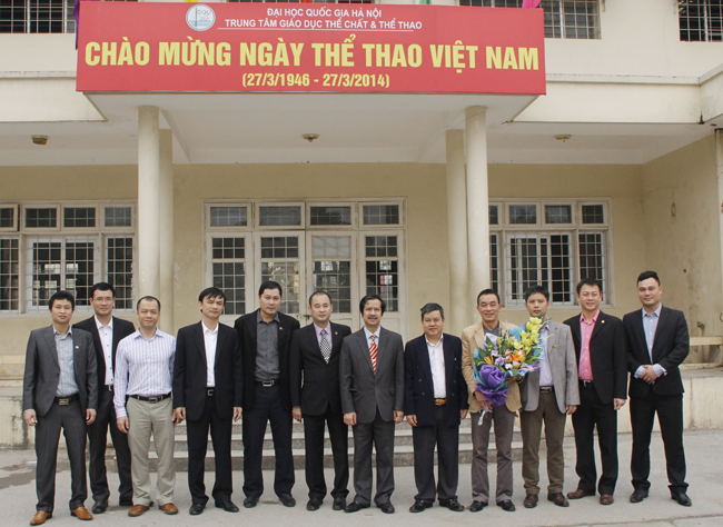 Thay mặt lãnh đạo ĐHQGHN, Phó Giám đốc Nguyễn Kim Sơn đã tặng hoa và gửi lời chúc mừng tới toàn thể cán bộ, giảng viên của Trung tâm. Phó Giám đốc biểu dương những thành tích mà Trung tâm GDTC&TT đã đạt được đồng thời mong rằng Trung tâm sẽ luôn giữ vững vai trò nòng cột trong hoạt động giảng dạy môn Giáo dục Thể chất trong tất cả các chương trình đào tạo bậc đại học, trung học phổ thông chuyên thuộc ĐHQGHN và các đơn vị khác theo yêu cầu và khả năng của Trung tâm cũng như làm đầu mối tổ chức các hoạt động thể dục thể thao, thi đấu thể dục thể thao trong ĐHQGHN theo chức năng nhiệm vụ.