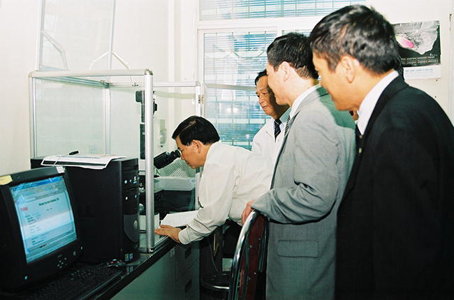 Chủ tịch nước Nguyễn Minh Triết thăm phòng thí nghiệm của Viện Vi sinh vật và Công nghệ Sinh học, năm 2007