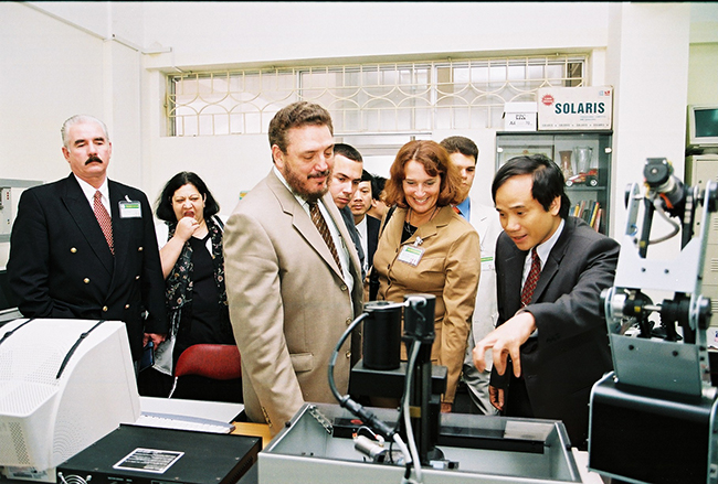 Bộ trưởng Bộ Giáo dục Cu Ba Fidel Angel Castro Diaz-Balart thăm phòng thí nghiệm của Trường Đại học Công nghệ