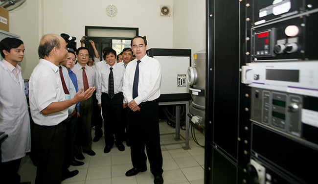 Phó Thủ tướng - Bộ trưởng Bộ Giáo dục và Đào tạo Nguyễn Thiện Nhân thăm Phòng thí nghiệm của Trường ĐHKH Tự nhiên, năm 2008