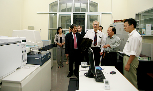 GS. Robert Huber (Giải Nobel Hóa học năm 1988) thăm phòng thí nghiệm của Khoa Hóa học - Trường ĐHKH Tự nhiên, năm 2008