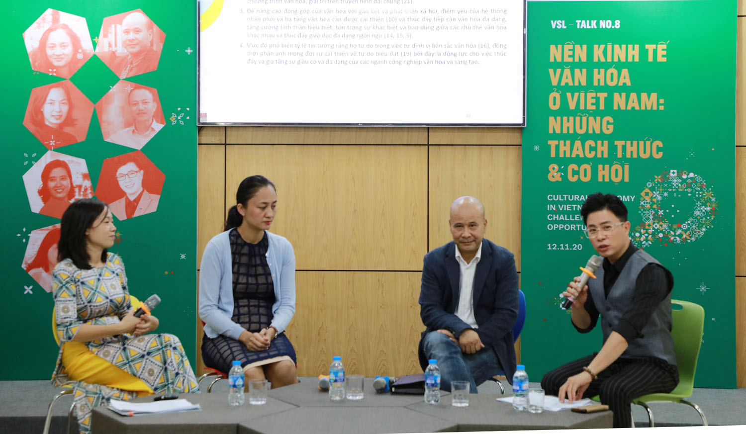 Cũng tại tọa đàm, đạo diễn Nguyễn Hoàng Điệp, PGS.TS. Trần Xuân Tú, PGS.TS. Trần Thị Thanh Tú và TS. Lư Thị Thanh Lê đã chia sẻ về việc thực hành văn hóa cũng như trao đổi về việc huy động tổng hợp các yếu tố văn hóa, kinh tế, công nghệ cho việc phát triển nền kinh tế văn hóa Việt Nam. Theo các diễn giả, bản chất của văn hóa là sự sáng tạo, hướng tới các giá trị nhân văn, hướng tới cái đúng, cái tốt để thúc đẩy tiến bộ xã hội.