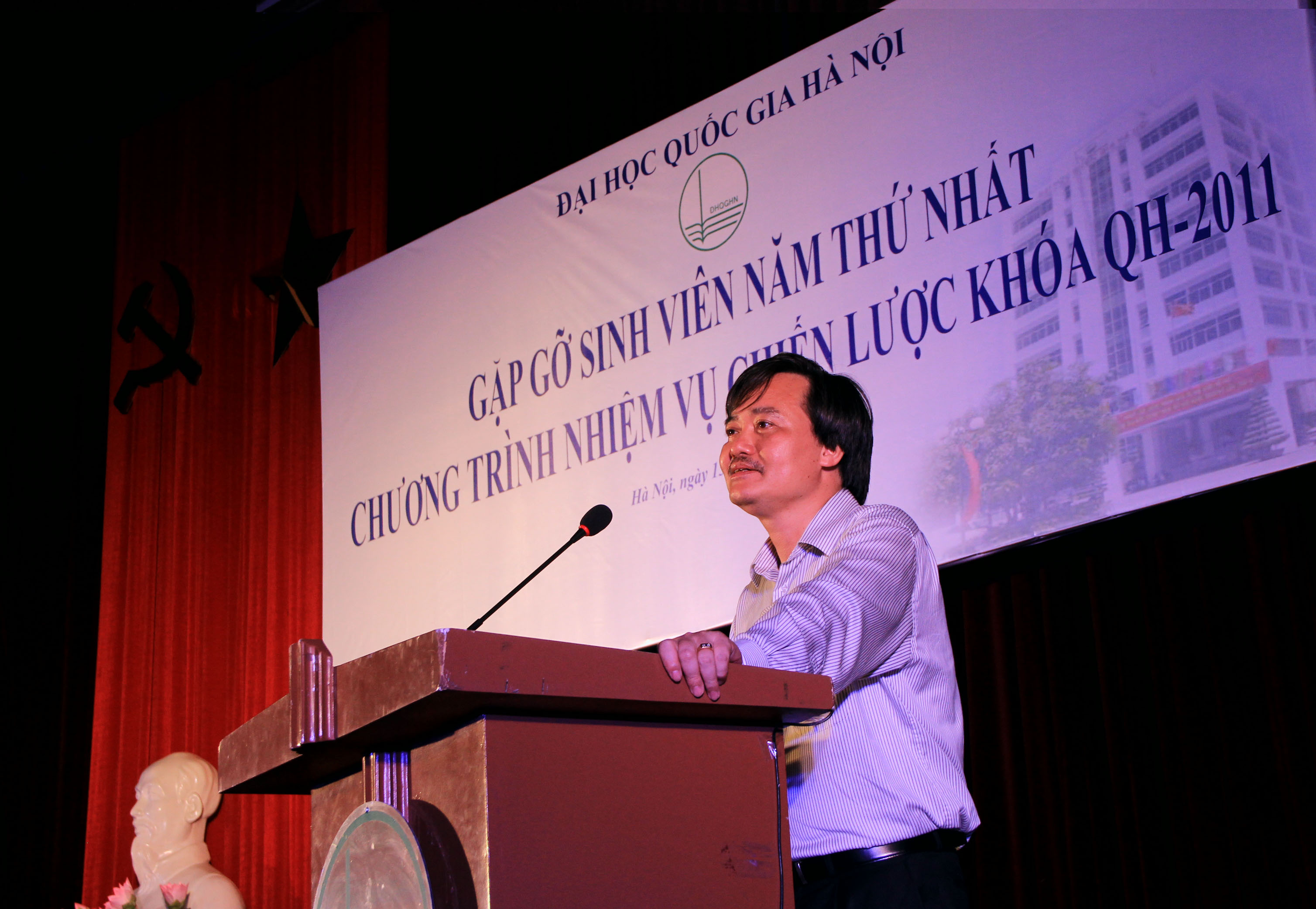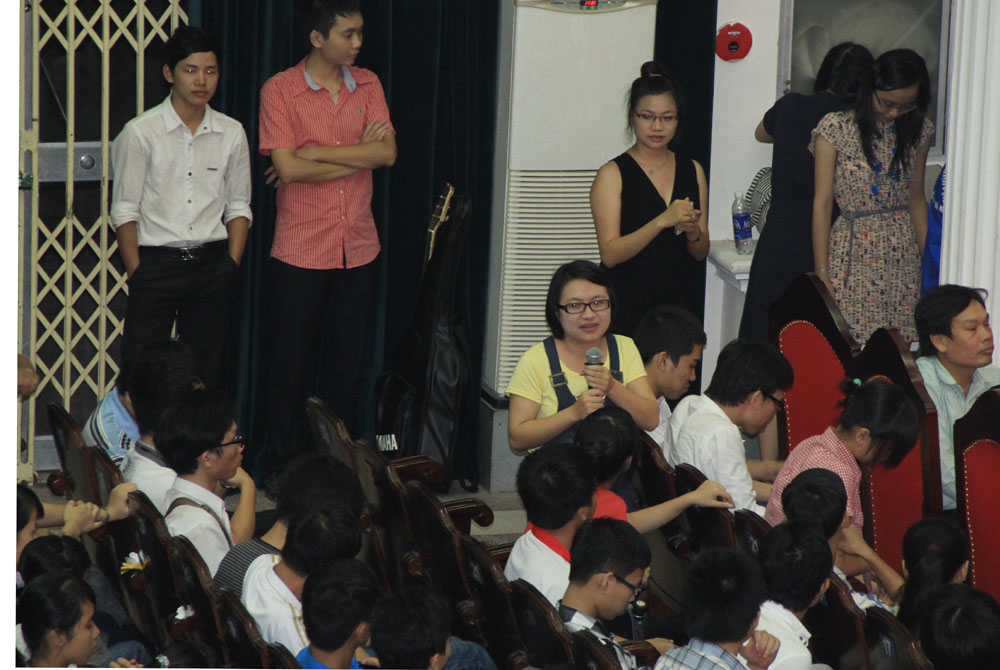Trong phần giao lưu, lãnh đạo ĐHQGHN, các Ban chức năng và đơn vị trực thuộc ĐHQGHN đã trả lời câu hỏi của các em sinh viên.