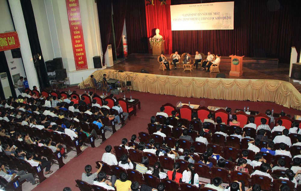 Phát biểu tại buổi gặp mặt, PGS.TS Phùng Xuân Nhạ - Ủy viên dự khuyết BCH Trung ương Đảng, Phó Giám đốc thường trực ĐHQGHN đã chúc mừng các em sinh viên bằng nỗ lực vươn lên đạt kết quả cao trong học tập và rèn luyện để trở thành những sinh viên tinh hoa theo học chương trình NVCL. PGS.TS Phùng Xuân Nhạ khẳng định, ĐHQGHN chủ trương nâng cao chất lượng bằng việc chọn những ngành, chuyên ngành mũi nhọn để tập trung đầu tư đạt trình độ quốc tế. Đây là một trong những quyết định sáng tạo, mang tính đột phá của ĐHQGHN với quyết tâm nâng cao chất lượng để hội nhập quốc tế trong điều kiện cụ thể của Việt Nam hiện nay.