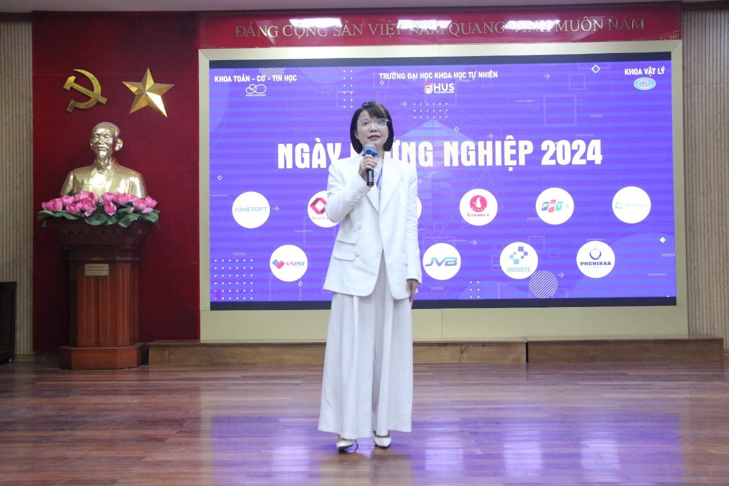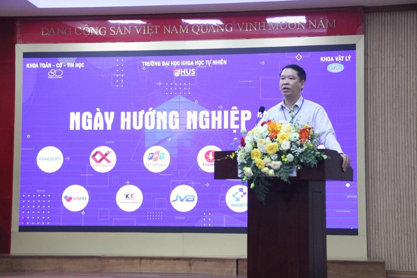 Trong phát biểu khai mạc, Phó Hiệu trưởng Trường ĐH Khoa học Tự nhiên GS.TS Lê Thanh Sơn bày tỏ cảm ơn tới các doanh nghiệp, đối tác và người đồng hành đã hỗ trợ Nhà trường để sinh viên có cơ hội giao lưu, học hỏi và tìm kiếm cơ hội việc làm sau này. “Trường ĐH Khoa học Tự nhiên là một trong những ngôi trường có bề dày truyền thống, là thành viên trụ cột của ĐHQGHN. Trải qua 68 năm kể từ Đại học Tổng hợp Hà Nội, Trường ĐHKHTN mới bổ sung và ban hành chiến lược phát triển Nhà trường đến năm 2035, tầm nhìn đến năm 2045. Trong đó, triết lý giáo dục là đào tạo gắn với nghiên cứu khoa học và đổi mới sáng tạo. Khoa học cơ bản là lĩnh vực nền tảng mà trường sẽ gìn giữ và phát huy” – GS.TS. Lê Thanh Sơn nhấn mạnh.