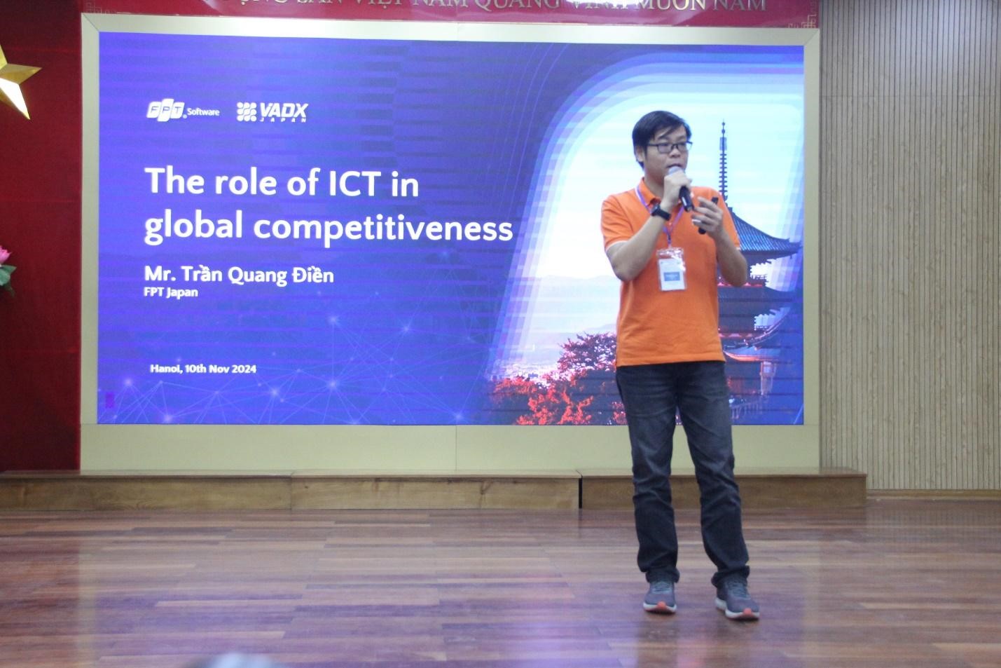 Chia sẻ tại ngày hội việc làm, ông Trần Quang Điền, Phó Giám đốc FPT Software Hà Nội đại diện cho khối doanh nghiệp chia sẻ với sinh viên: Nhật Bản đang là một trong những thị trường lao động thu hút được nhiều sự quan tâm của các bạn trẻ. Nhằm giúp sinh viên có thêm thông tin về thị trường lao động tiềm năng này, ông Trần Quang Điền cũng đã chia sẻ về cơ hội của sinh viên công nghệ thông tin với thị trường ICT Nhật Bản và những điều sinh viên cần trang bị để gia nhập thị trường này.