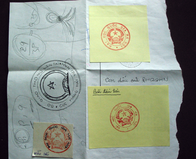 Ngay sáng 6/9/1994, ĐHQGHN đi làm thủ tục khắc dấu ở Bộ Công an với giấy giới thiệu của Văn phòng Chính phủ cho phép ĐHQGHN sử dụng dấu mang hình Quốc huy. Họ hẹn sau 4 ngày đến lấy dấu. Mọi người hồi hộp mong chờ. Đã 6 tháng nay ĐHQGHN hoạt động không có con dấu. Có một lần, tôi gửi công văn lên Thủ tướng Chính phủ. Chỉ một giờ sau, Văn phòng Chính phủ gọi điện xuống, yêu cầu ĐHQGHN lên nhận lại công văn về vì công văn không có dấu. Tôi phải thưa với đồng chí phụ trách Văn phòng Chính phủ rằng, xin đồng chí đọc kỹ công văn của chúng tôi, đây là công văn xin Thủ tướng cho khắc dấu.