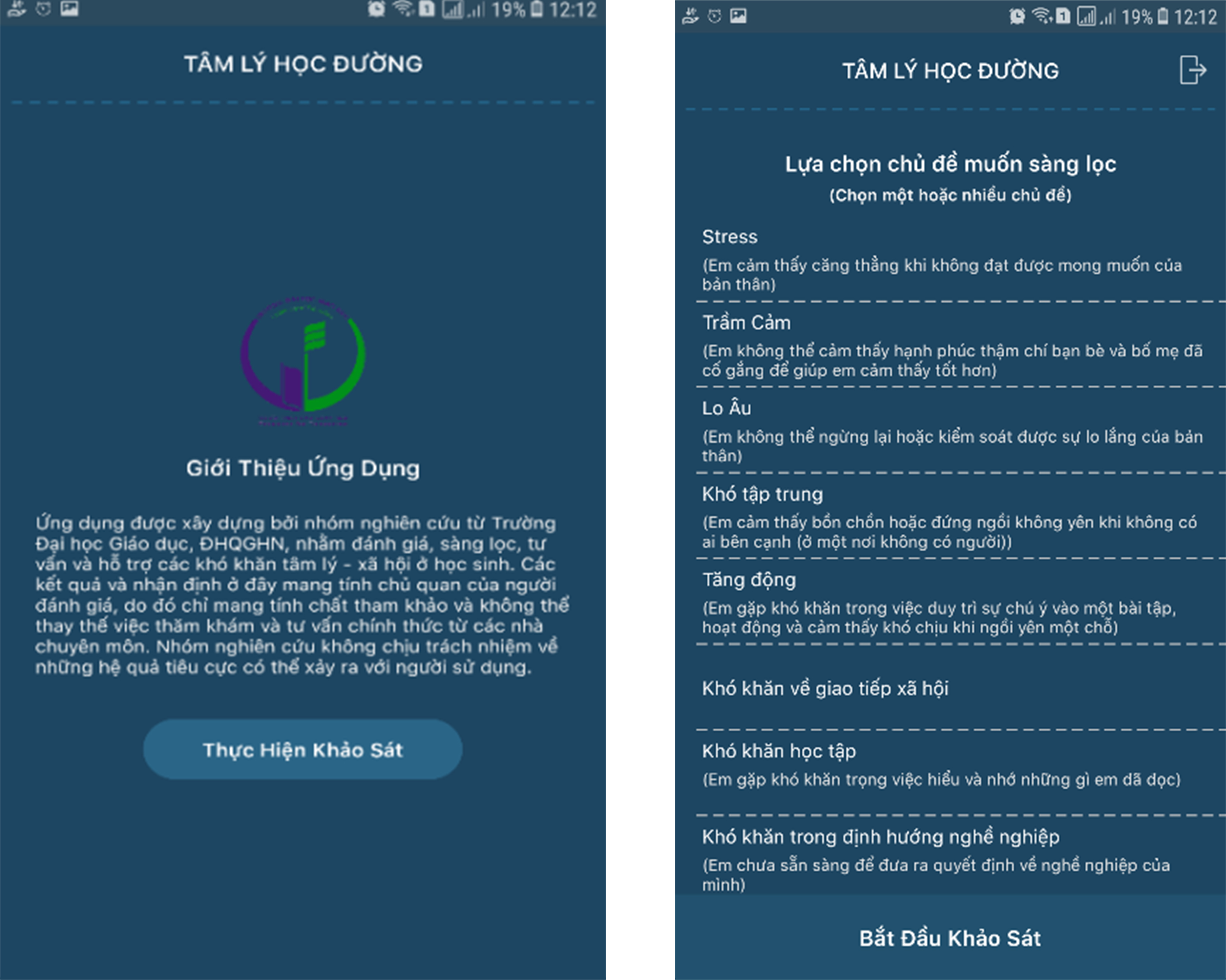 Khi thực hiện đề tài, Phương đã đi theo một trình tự logic, nghiên cứu được tiến hành dựa trên cơ sở lý luận và thực tiễn về các khó khăn tâm lý mà học sinh Trung học phổ thông hiện nay thường gặp. Công cụ đo đạc có độ tin cậy cao và đã được điều chỉnh cho phù hợp với văn hóa Việt Nam. Đồng thời, thiết lập được điểm chuẩn để xác định các khó khăn tâm lý xã hội ở học sinh Trung học phổ thông. Xây dựng nền tảng ứng dụng điện thoại trên nền tảng hệ điều hành Android.