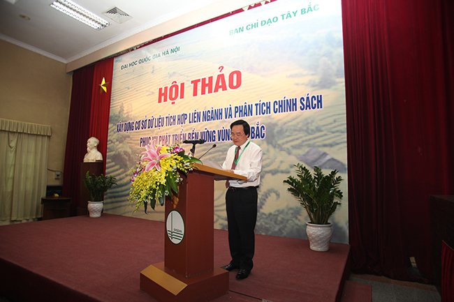 Trong khuôn khổ Chương trình KHCN trọng điểm cấp Nhà nước phát triển bền vững vùng Tây Bắc, hôm nay Đại học Quốc gia Hà Nội phối hợp với Ban Chỉ đạo Tây Bắc tổ chức Hội thảo "Xây dựng cơ sở dữ liệu tích hợp liên ngành và phân tích chính sách phục vụ phát triển bền vững vùng Tây Bắc". Thay mặt Đại học Quốc gia Hà Nội, Ban chủ nhiệm Chương trình, xin trân trọng cảm ơn đồng chí Phó Thủ tướng đã quan tâm và dành thời gian tới dự Hội thảo. Kính chúc đồng chí Phó thủ tướng, các đồng chí đại biểu và các nhà khoa học luôn dồi dào sức khoẻ, hạnh phúc và thành công!
