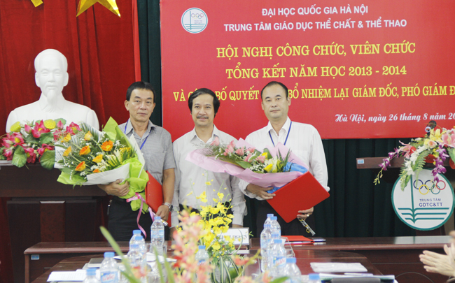 Cũng trong khuôn khổ hội nghị, Phó Giám đốc ĐHQGHN đã trao quyết định bổ nhiệm lại Giám đốc và Phó Giám đốc Trung tâm GDTC&TT.