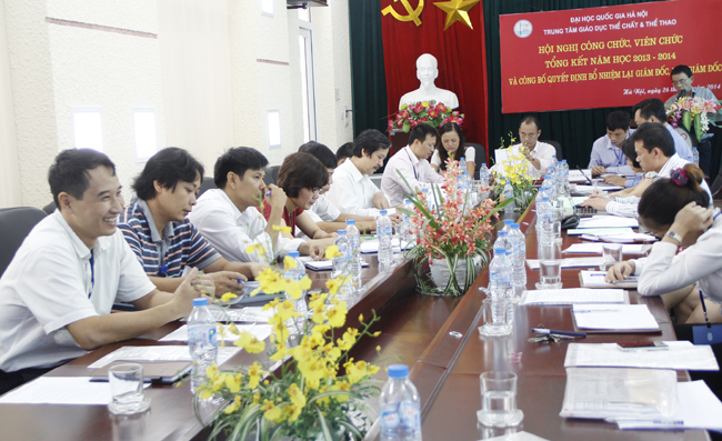 Tới dự hội nghị có Phó Giám đốc ĐHQGHN Nguyễn Kim Sơn, đại diện lãnh đạo Văn phòng và các Ban chức năng của ĐHQGHN cùng toàn thể cán bộ công chức, viên chức Trung tâm Giáo dục Thể chất và Thể thao (GDTC&TT).