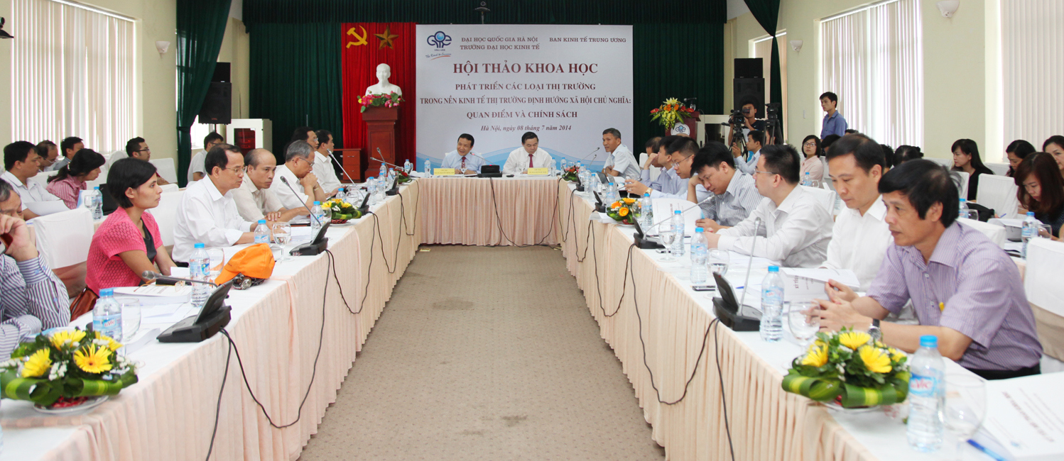 Tại hội thảo, các đại biểu đã nghe các tham luận về “Phát triển thị trường hàng hóa - dịch vụ Việt Nam và Hà Nội giai đoạn hội nhập và tham gia Cộng đồng Kinh tế ASEAN (AEC)” do TS. Hoàng Xuân Nghĩa (Viện Nghiên cứu Phát triển Kinh tế - Xã hội Hà Nội) trình bày; tham luận “Phát triển bền vững thị trường dịch vụ logistics sau khi Việt Nam gia nhập WTO” của PGS.TS Hà Văn Hội (Chủ nhiệm Khoa Kinh tế và Kinh doanh Quốc tế, Trường ĐHKT - ĐHQGHN), và tham luận “Phát triển thị trường bất động sản nhằm đồng bộ hóa các loại thị trường ở Việt Nam” do PGS.TS Vũ Văn Phúc (Tổng biên tập Tạp chí Cộng sản) trình bày. Các tham luận đã phân tích tình hình phát triển của các loại thị trường được nêu trong các tham luận, những nhân tố tác động đến sự phát triển và đưa ra những khuyến nghị/giải pháp nhằm phát triển các loại thị trường trong giai đoạn mới, phù hợp với bối cảnh kinh tế Việt Nam.