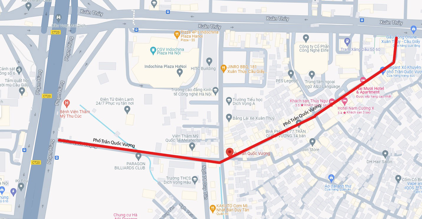 Phố Trần Quốc Vượng dài 750m, rộng 13.5m, bắt đầu từ ngã ba giao cắt với đường Xuân Thủy (tại số nhà 165 Xuân Thủy) đến ngã ba giao cắt với đường Phạm Hùng (đối diện Bệnh viện Y học Cổ truyền). Việc đặt tên đường mang tên GS. Trần Quốc Vượng như một sự ghi nhớ, tri ân và tôn vinh của Đảng bộ, chính quyền, nhân dân Thủ đô đối với Giáo sư với tư cách là một danh nhân có công lớn đối với đất nước, dân tộc.