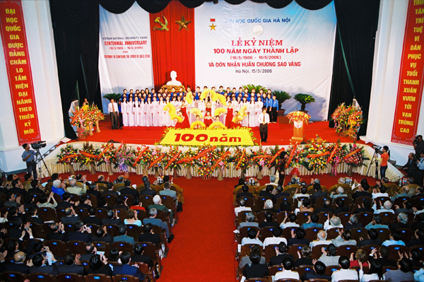 Trước hết, xin thay mặt toàn thể cán bộ, viên chức, sinh viên ĐHQG - HCM gửi tới toàn thể các thầy cô giáo, cán bộ viên chức cùng các em sinh viên ĐHQGHN lời chúc mừng chân thành và nồng nhiệt nhất nhân sự kiện ĐHQGHN tổ chức kỷ niệm 100 năm ngày thành lập. Sự kiện này không chỉ quan trọng đối với lịch sử xây dựng và phát triển ĐHQGHN mà còn có ý nghĩa hết sức to lớn trong lịch sử phát triển của nền giáo dục đại học hiện đại Việt Nam mà ĐHQG TP.HCM cũng là một thành viên. Do vậy xin cho phép chúng tôi được cùng chia sẻ niềm vui cũng như niềm tự hào trước sự kiện này cùng với cán bộ sinh viên ĐHQGHN.