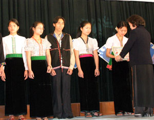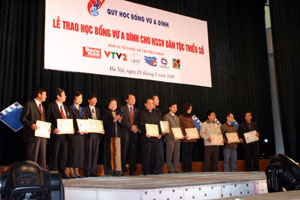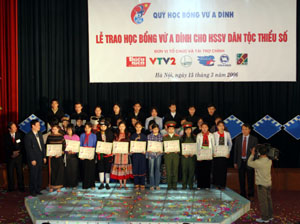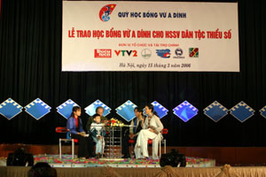 Sáng 15/3/2006 tại hội trường 10 – 12 (ĐHQGHN) lễ trao học bổng Vừ A Dính cho 103 em học sinh, sinh viên thuộc 5 trường đại học, học viện, trường Hữu nghị 80 Sơn Tây và học sinh phổ thông tỉnh Hà Tây đã diễn ra. Phó chủ tịch nước Trương Mỹ Hoa - Chủ tịch Quỹ học bổng Vừ A Dính; GS.TSKH Đào Trọng Thi – Uỷ viên TƯ Đảng, Giám đốc ĐHQGHN; đồng chí Đào Ngọc Dung – Bí thư thứ nhất TƯ Đoàn cùng đại diện một số bộ; cơ quan ngang bộ; đại diện các đơn vị đồng tổ chức; nhà tài trợ và đông đủ đại diện học sinh, sinh viên đã tham dự buổi lễ.