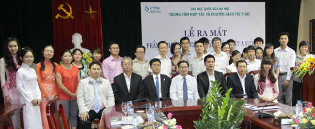 Thay mặt lãnh đạo ĐHQGHN, GS.TS Nguyễn Hữu Đức chúc mừng Trung tâm Hợp tác và Chuyển giao Tri thức với sản phẩm khoa học đầu tiên.
