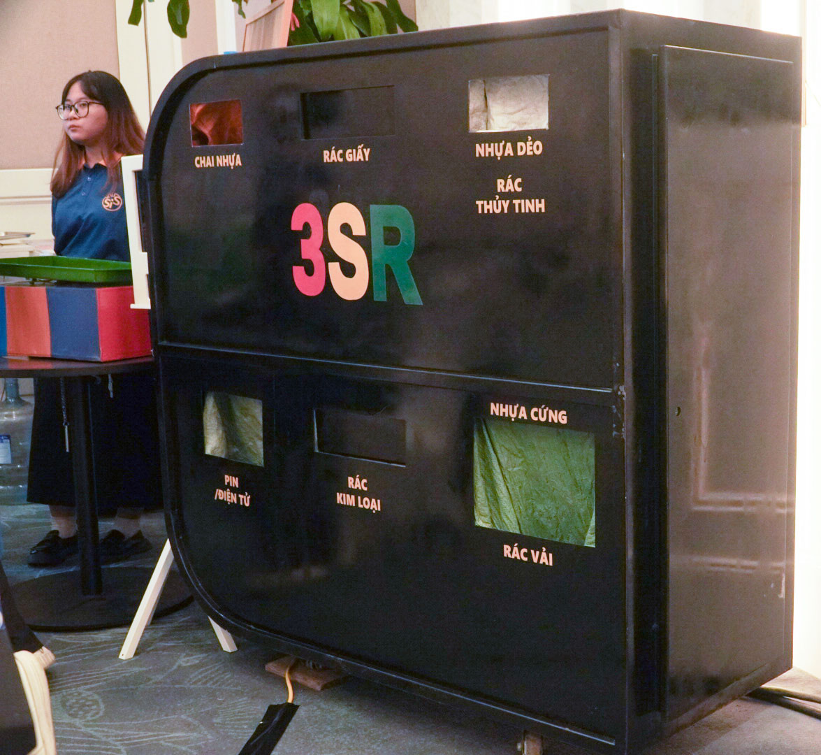 Giải pháp “3SR - Trạm cân rác tự động tích hợp trong chuỗi điểm bán hàng mini xanh” 3SR là mô hình điểm bán hàng xanh tích hợp 3 tính năng: bán lẻ (smart retails), tái nạp (smart refill), thu gom và phân loại rác tự động (smart recycling). Hướng kinh doanh của 3SR tập trung phát triển phần mềm kết nối các nguồn lực từ rác theo hướng quản lý chuỗi bán lẻ gắn với tín chỉ carbon và tín chỉ nhựa vì mục tiêu hướng đến NETZERO của Việt Nam vào năm 2050.