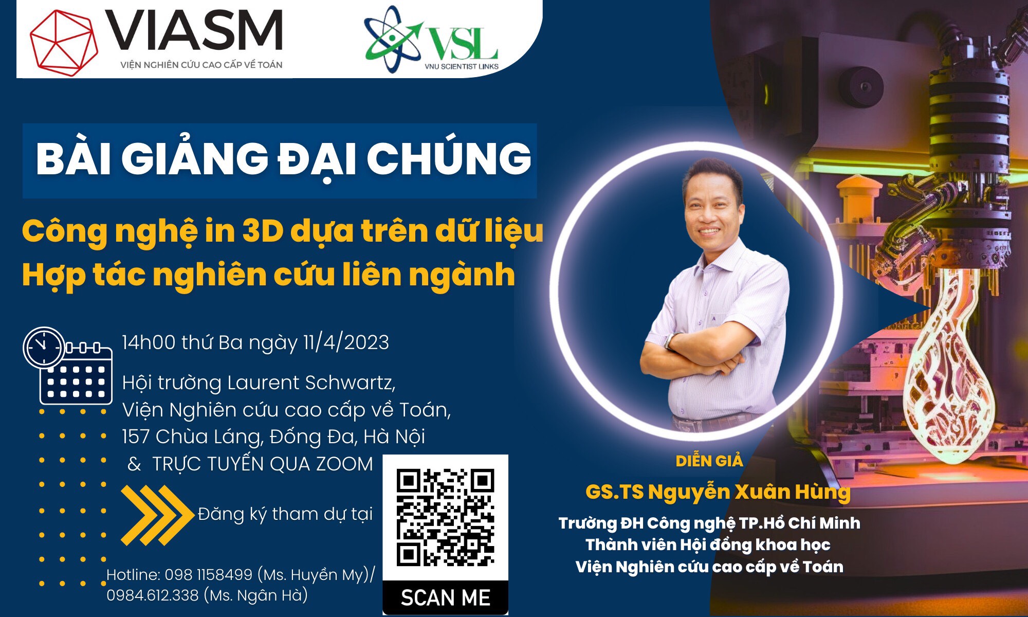 - Địa điểm: Hội trường Laurent Schwartz, Viện Nghiên cứu cao cấp về Toán, 157 Chùa Láng, Đống Đa, Hà Nội & TRỰC TUYẾN QUA ZOOM