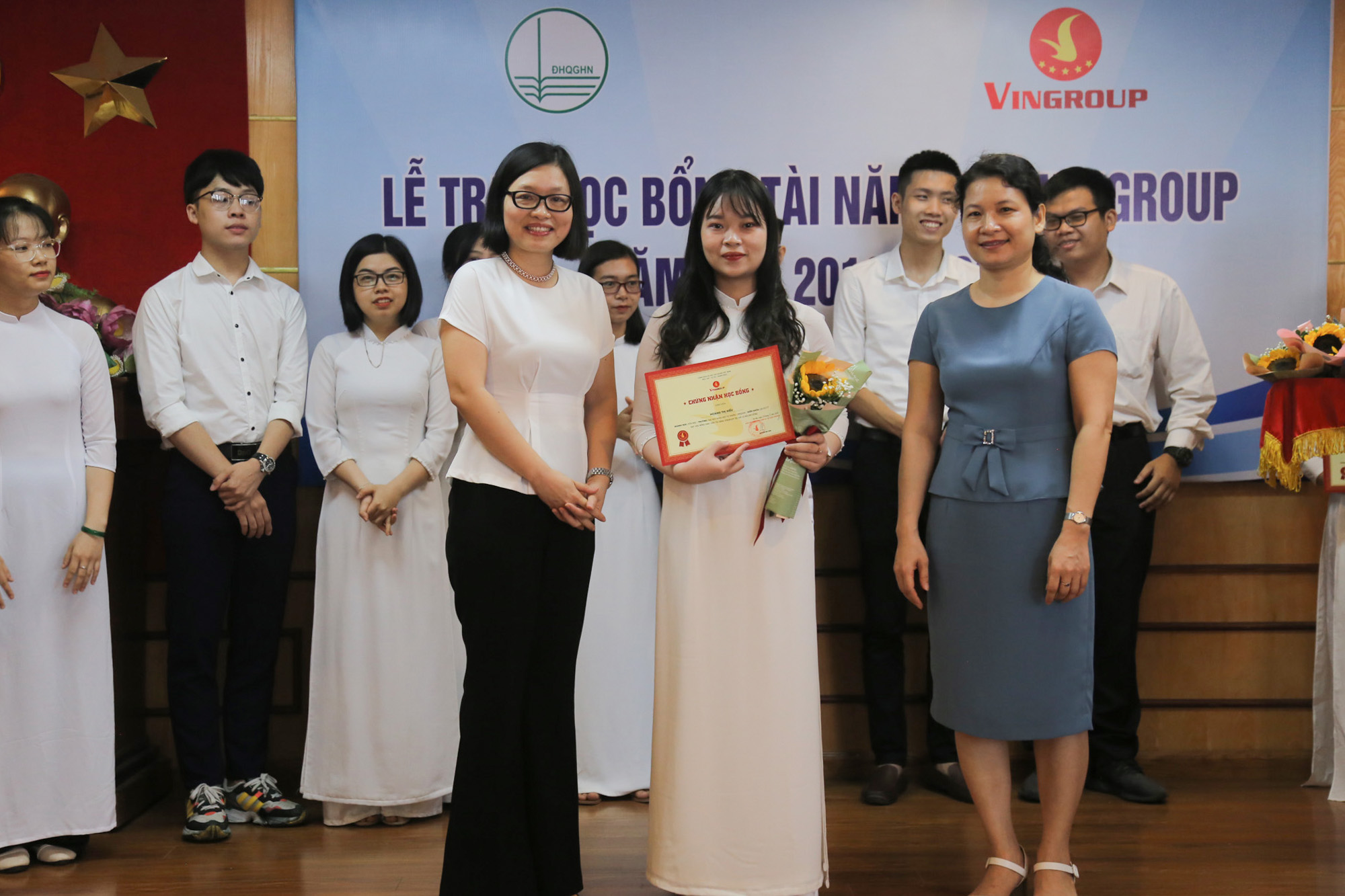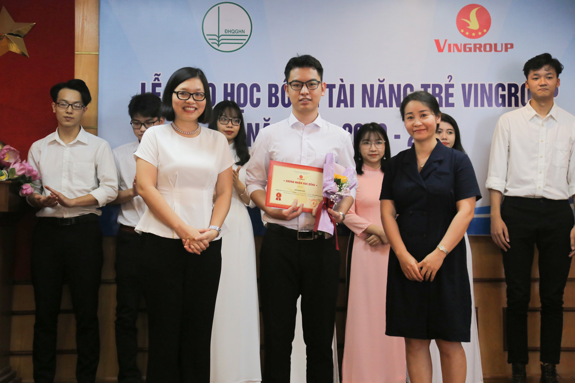 Chương trình học bổng tài năng trẻ Vingroup đã được ĐHQGHN triển khai từ năm 2017 cho đối tượng là sinh viên có thành tích xuất sắc trong học tập, rèn luyện và nghiên cứu khoa học. Bên cạnh học bổng tiền mặt, sinh viên còn có cơ hội thực tập và trải nghiệm thực tế cũng như chính sách ưu tiên tuyển dụng làm việc tại Tập đoàn.