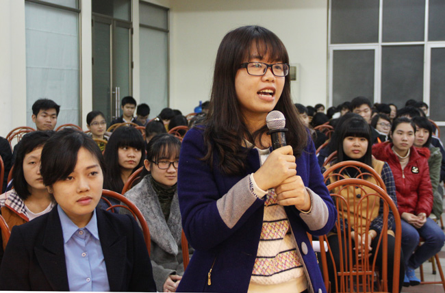 Tại buổi đối thoại, Ông Trần Phú Sơn – Phó Tổng Giám đốc và bà Trần Thị Thu Hương – Giám đốc Nhân sự Ersnt & Young Việt Nam - một trong bốn tập đoàn Kiểm toán hàng đầu thế giới, ông Đặng Anh Vinh – Tổng Giám đốc Công ty tài chính cổ phần Sông Đà, ông Đỗ Văn Khắc – Phó Tổng Giám đốc FPT Software đã trao đổi thông tin với các sinh viên về những cơ hội việc làm của các công ty, kinh nghiệm khi tham gia tuyển dụng đối với từng lĩnh vực ngành nghề.