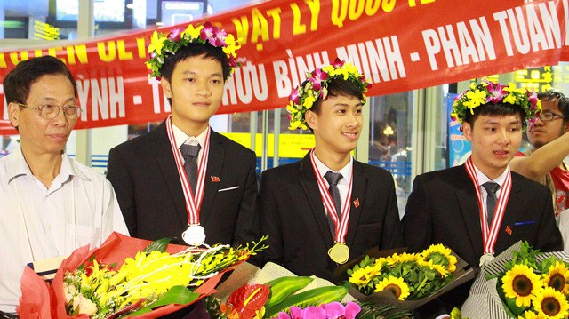 Nguyễn Thế Quỳnh (thứ 3, từ trái sang) giành "cú đúp" Huy chương Vàng Vật lý quốc tế