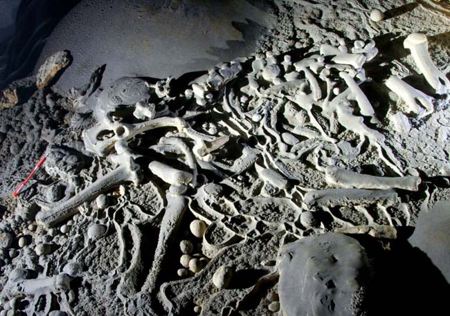 Hóa thạch Động vật móng guốc ở phần cuối hang Sơn Đoòng (ảnh: Tạ Hoà Phương)