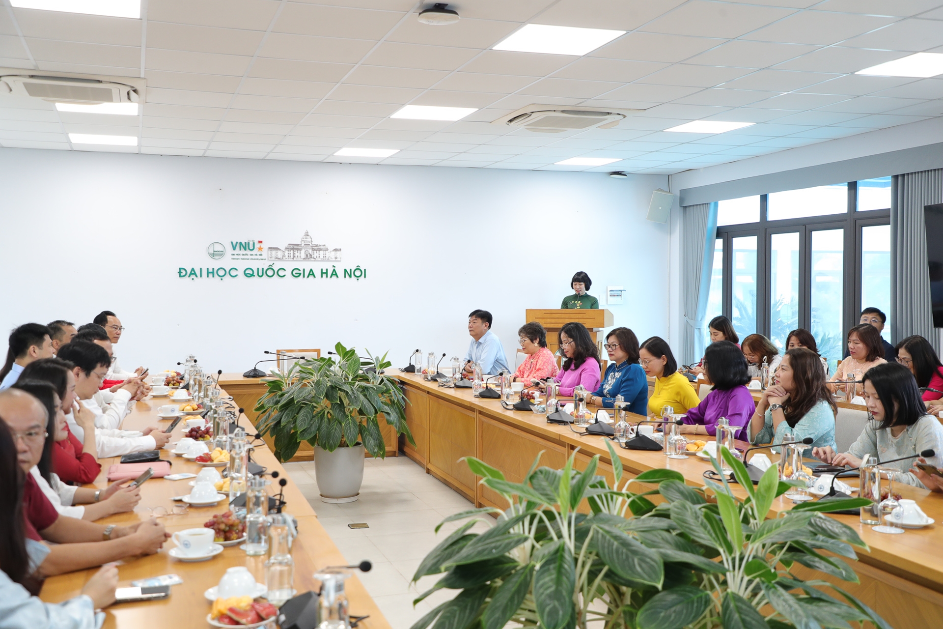 Bà bày tỏ niềm vui mừng khi tọa đàm năm nay có sự tham dự của Giám đốc, các Phó Giám đốc ĐHQGHN, lãnh đạo các đơn vị và đông đảo công đoàn viên, coi đây là dịp để các chị em được gặp gỡ, chia sẻ và tìm thấy thông điệp tích cực về lối sống cân bằng, nuôi dưỡng “tâm an” và hạnh phúc.