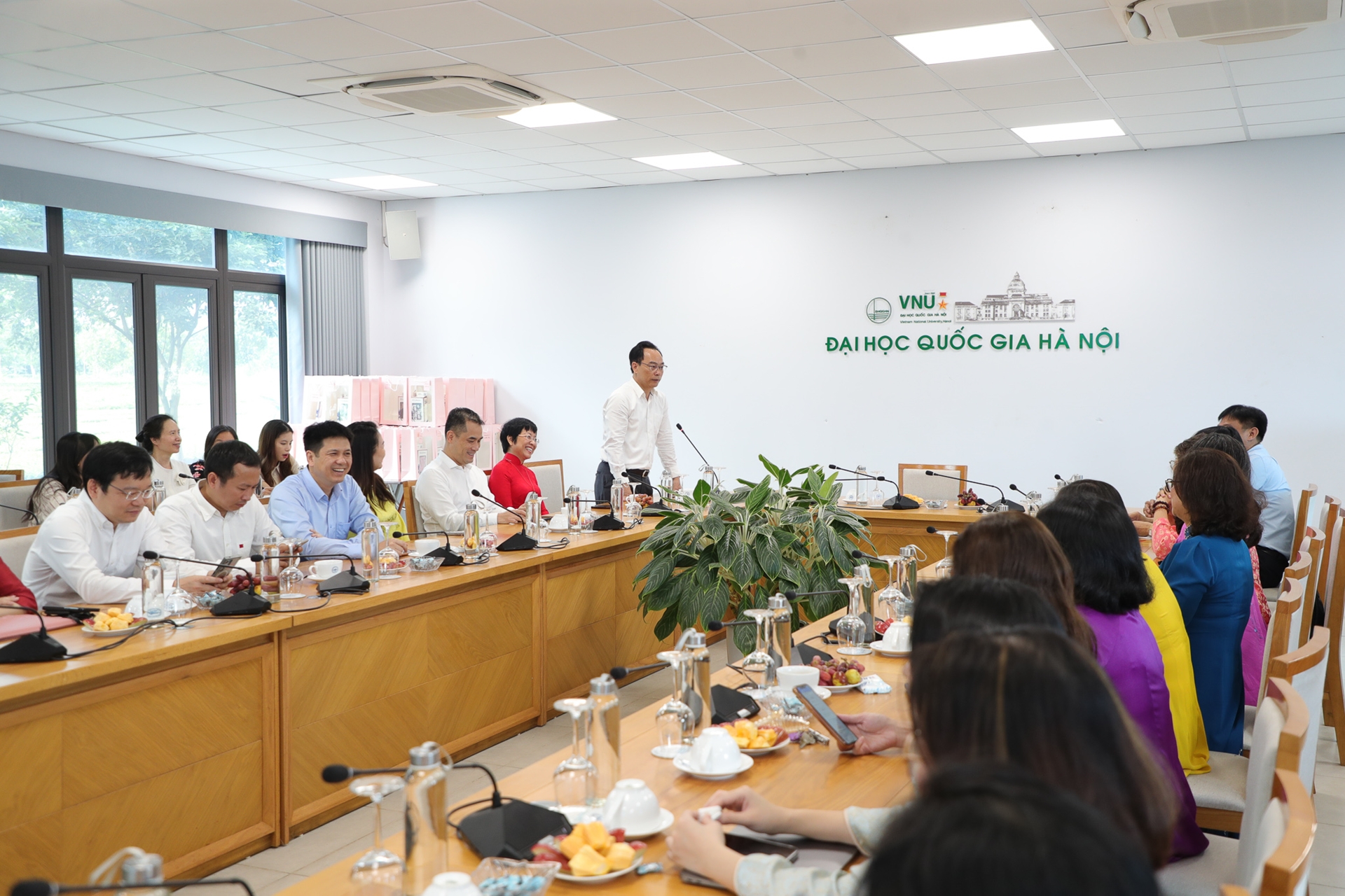 Phát biểu tại buổi tọa đàm, Giám đốc ĐHQGHN Hoàng Minh Sơn gửi tới toàn thể nữ cán bộ, viên chức, người lao động của Cơ quan ĐHQGHN lời chúc mừng nồng nhiệt và lời cảm ơn chân thành.