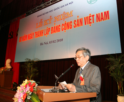 Tôi may mắn được kết nạp vào Đảng trong thời gian công tác ở ĐHQGHN, đến nay đã được hơn 40 năm tuổi Đảng. Thế hệ đầu tiên của chúng tôi trong nhà trường, dù thuộc khoa học xã hội hay khoa học tự nhiên đều phải đảm nhận nhiệm vụ xây dựng các môn học từ nền tảng ban đầu, rồi tiến tới mở ra các ngành học mới. Cho đến nay, nhiều thế hệ giảng viên tiếp nối vẫn không ngừng khai phá và xây dựng nhiều ngành khoa học mới. Công việc đó đặt ra nhiều thử thách, có nhiều thành công, cũng có lúc chưa thành công nhưng cuối cùng đều vượt qua để tiến tới một cơ ngơi mà chúng ta đang có đó là ĐHQGHN hôm nay. Trongkhoa học chân chính không có những phong trào rầm rộ, không có những thành tựu ra đời gấp gáp trong thời gian ngắn. Mà nó thể hiện trong từng giờ giảng, trên từng trang giáo trình, qua từng bài khóa luận để cuối cùng, với công sức tập thể, nó hình thành một kết quả, một thành tựu, một công trình. |