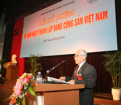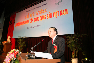 Tại buổi lễ, đồng chí Tô Huy Rứa phát biểu, “ Tôi rất vui mừng đến dự Lễ kỷ niệm 80 năm ngày thành lập Đảng Cộng sản Việt Nam tại ĐHQGHN – một trung tâm đào tạo và nghiên cứu khoa học lớn nhất của cả nước, cái nôi của nền giáo dục đại học hiện đại Việt Nam”.