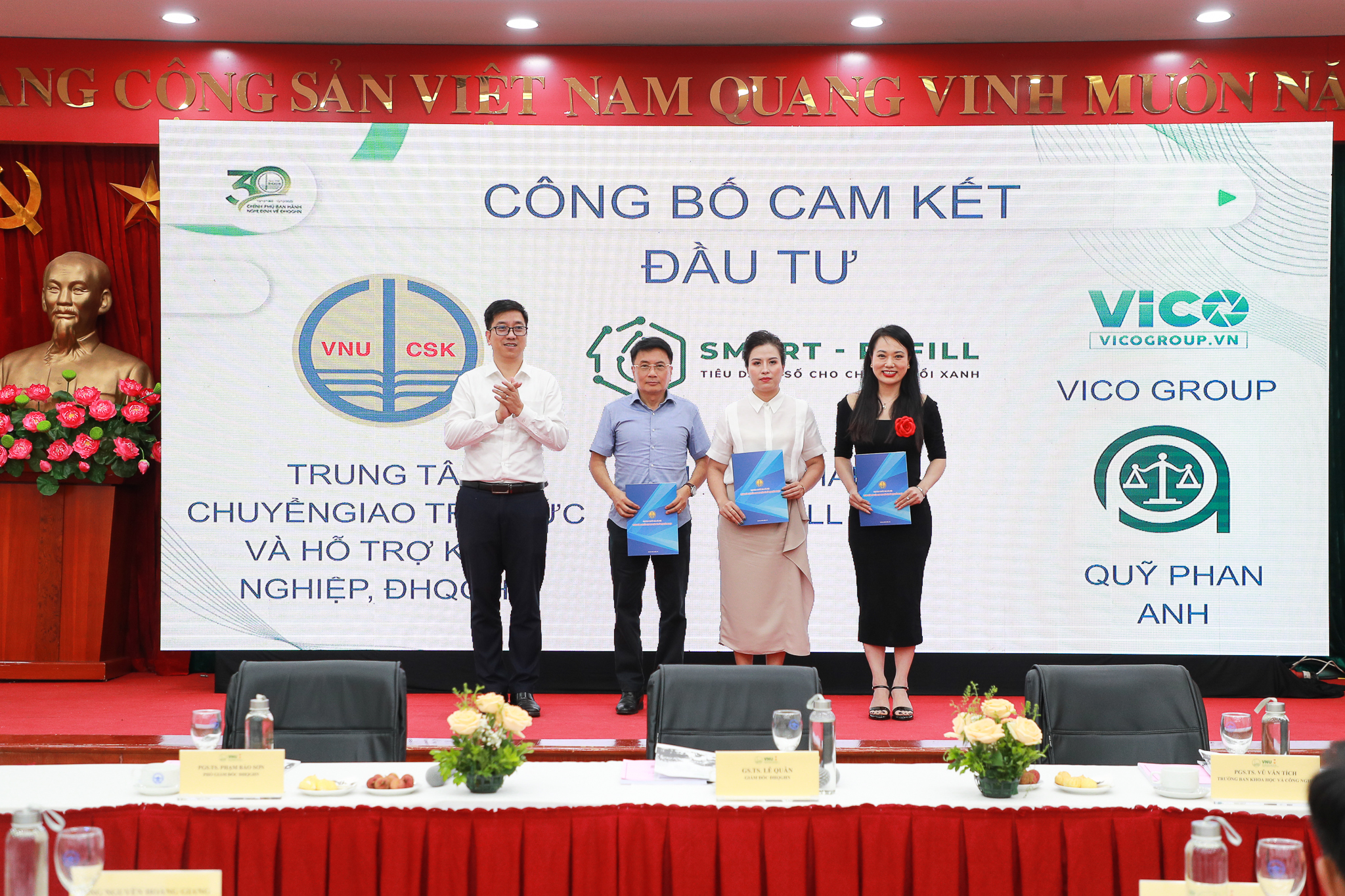 Quỹ Phan Anh phối hợp với Công ty Cổ phần công nghệ đa nền tảng VICO trao cam kết đầu tư cho dự án Smart – Refill do Trung tâm Chuyển giao tri thức và Hỗ trợ khởi nghiệp ĐHQGHN làm đầu mối