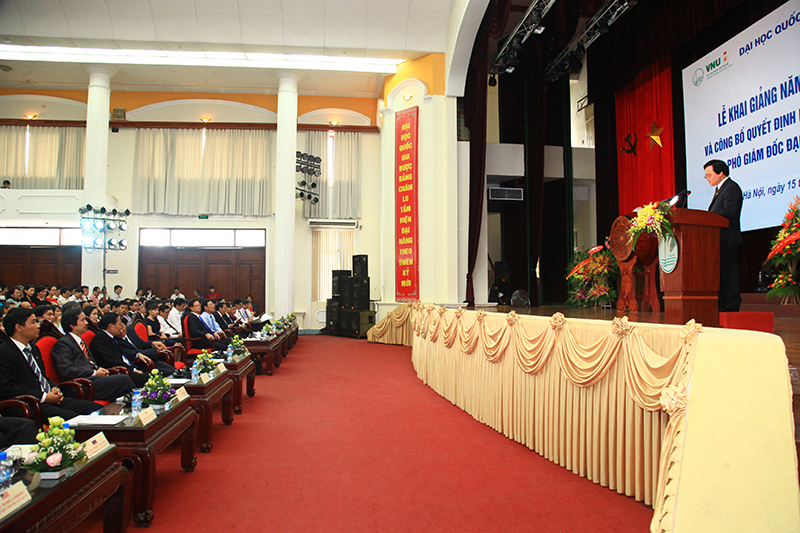 Trong phát biểu tại Lễ khai giảng, Thủ tướng Chính phủ Nguyễn Tấn Dũng bày tỏ niềm vui khi nhận thấy ĐHQGHN đã và đang tiếp tục đổi mới và phát triển tốt theo hướng chuẩn hóa, hiện đại hóa và hội nhập quốc tế, tiếp tục khẳng định vị thế là một trung tâm đào tạo, nghiên cứu khoa học và chuyển giao công nghệ đa ngành, đa lĩnh vực hàng đầu đất nước.