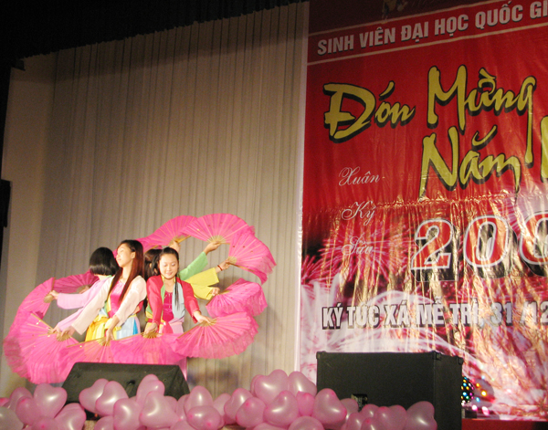Khoảng 4.000 đến 5.000 lượt sinh viên từ khắp các trường đã tụ tập về tham dự chương trình giao lưu chào năm mới do Ban Quản lý KTX tổ chức với những tiết mục văn nghệ đặc sắc của cả sinh viên và một số ca sĩ trẻ đang được mến mộ biểu diễn. “Em muốn đem lời ca tiếng hát để thay cho lời cầu chúc một năm mới với nhiều niềm hạnh phúc dành cho tất cả mọi người" - một diễn viên sinh viên chia sẻ...
