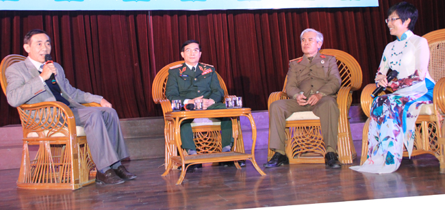 Ngoài ra, chương trình cũng đã để lại ấn tượng tốt đẹp với phần giao lưu cùng 3 cựu chiến binh: Anh hùng lực lượng vũ trang Lê Mã Lương, CCB Phạm Thành Hưng - Khoa Văn Trường ĐHKHXH&NV, CCB Phạm Quang Tiềm. Các cựu chiến binh đã có những chia sẻ cảm động và chân thành khi kể lại những kỷ niệm đáng nhớ của một thời tuổi trẻ khoác trên mình màu áo lính. Những tâm sự này sẽ tiếp thêm sức mạnh giúp sinh viên ĐHQGHN vượt qua những khó khăn, có ý chí phấn đấu và khát vọng cống hiến nhiều hơn cho xã hội, cho đất nước.