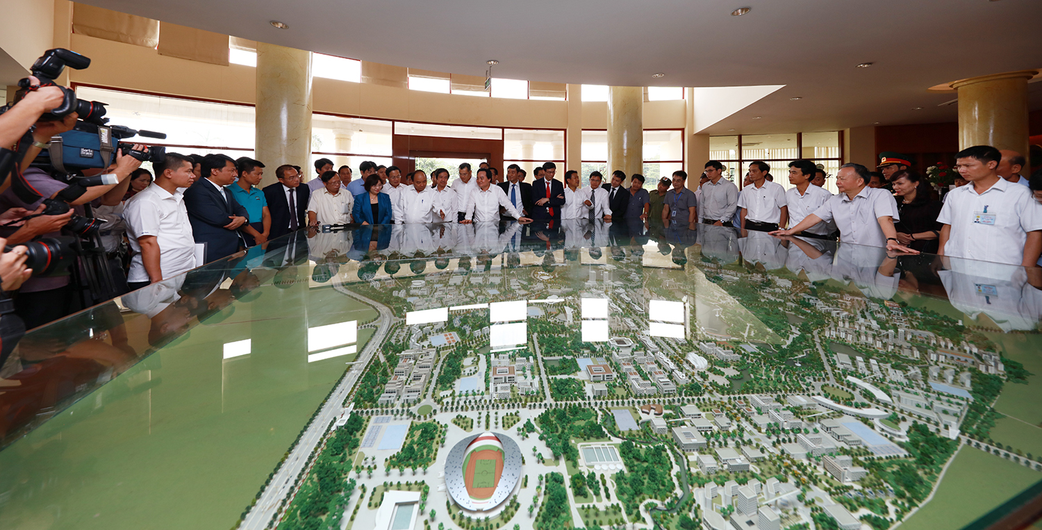 Thủ tướng bên sa bàn phối cảnh khu đô thị ĐHQGHN tại Hòa Lạc