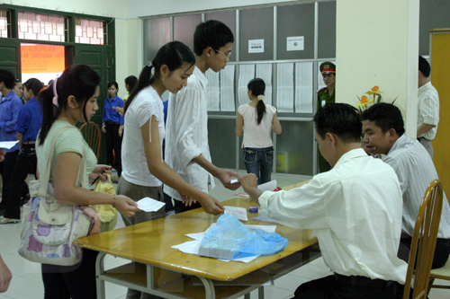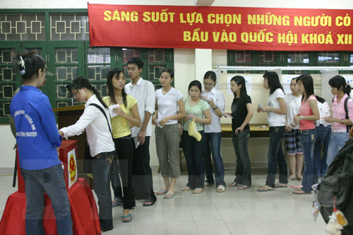 Sinh viên ngoại tỉnh và nội trú các đơn vị : Trường ĐH Công nghệ, Trường ĐH Kinh tế, Khoa Luật - ĐHQGHN tham gia bỏ phiếu tại KTX-NN |
