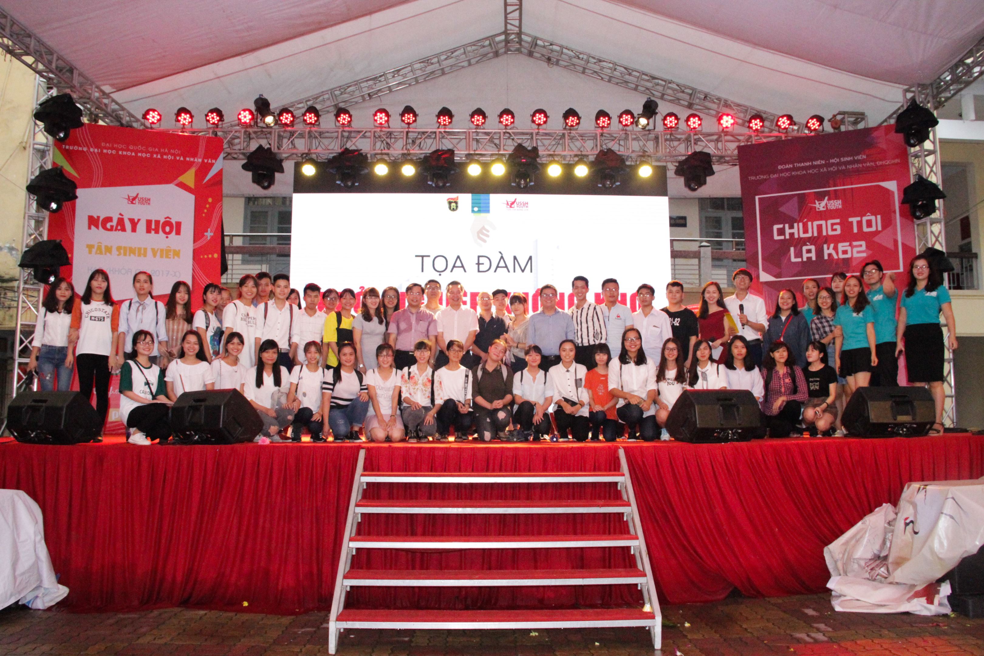 Diễn giả của buổi tọa đàm đều là những cựu sinh viên của Nhà trường đã thành công trong khởi nghiệp: Anh Nguyễn Phan Huy Khôi - K45 chuyên ngành Hán Nôm, Khoa Văn học, hiện là Giám đốc đối ngoại tập đoàn Number 1 – Tân Hiệp Phát, Chủ tịch kiêm Tổng Giám đốc công ty TNHH đầu tư Bảo Ninh; Chị Nhữ Thị Ngần - K48 Du lịch học, Tổng Giám đốc Công ty Cổ phần Đầu tư Du lịch Hà Nội, Chủ tịch HĐQT Công ty Cổ phần Du lịch Vecas.