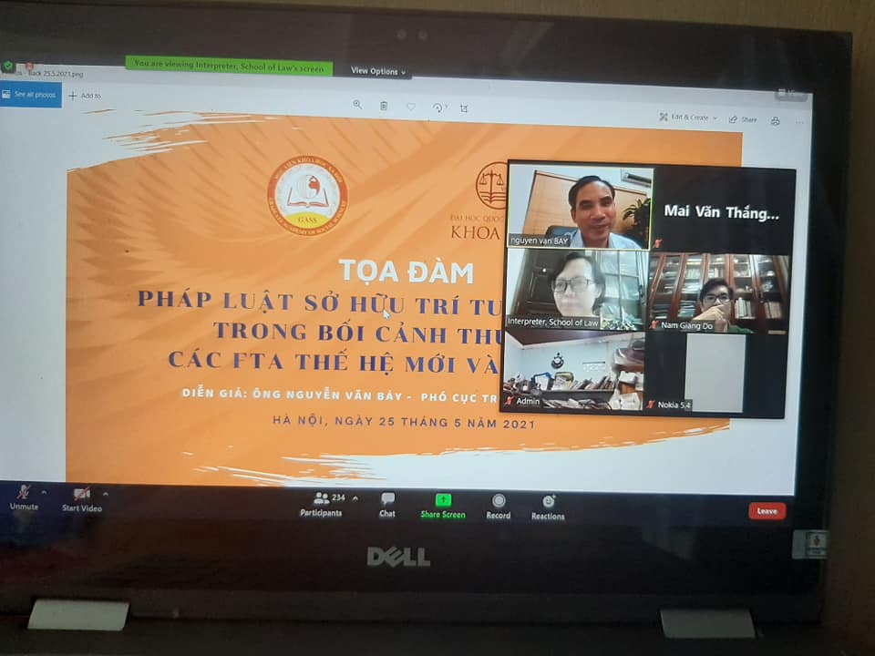 Tọa đàm có sự tham gia của PGS.TS. Nguyễn Thị Quế Anh – Chủ nhiệm Khoa Luật, ĐHQGHN, TS. Mai Văn Thắng – Trưởng phòng QLKH&HTPT, Khoa Luật, ĐHQGHN, TS. Nguyễn Bích Thảo – Chủ nhiệm Bộ môn Luật Dân sự, Khoa Luật, ĐHGQHN và hơn 230 chuyên gia, nhà khoa học, giảng viên, nghiên cứu viên, nghiên cứu sinh, học viên cao học các đơn vị đào tạo, nghiên cứu và các tổ chức liên quan lĩnh vực SHTT trong cả nước.