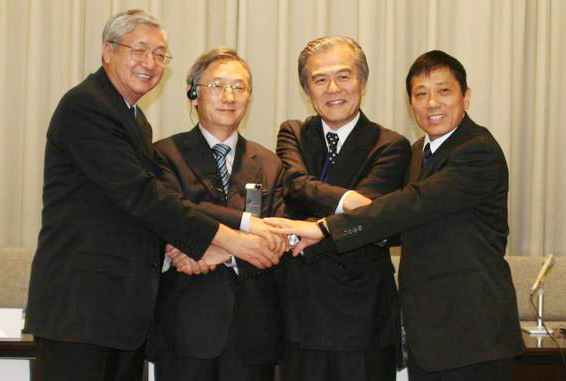 Đại học Quốc gia Hà Nội tham gia vào Diễn đàn 4 đại học chủ chốt Đông Á gồm Đại học Bắc Kinh (Trung Quốc), Đại học Quốc gia Seoul (Hàn Quốc), Đại học Tokyo (Nhật Bản) và ĐHQGHN (Việt Nam), viết tắt là BESETOHA. Trong ảnh các giám đốc của 4 đại học bắt tay nhau tại kỳ họp thường niên lần thứ 10 tại Bắc Kinh (BESETOHA X) với chủ đề: Sự hài hòa của các nền văn minh & thịnh vượng chung - Giá trị toàn cầu & xu thế phát triển. GS.TS Mai Trọng Nhuận - Giám đốc ĐHQGHN (ngoài cùng bên phải). |